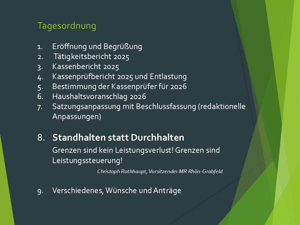Wir freuen uns auf den authentischen, ehrlichen und interessanten Vortrag von Christoph Rothhaupt, Landwirt und Vorsitzender des MR Rhön-Grabfeld. Er bringt uns aus eigener Erfahrung nahe, wie wichtig Grenzen für das eigene Wohlbefinden sind.
